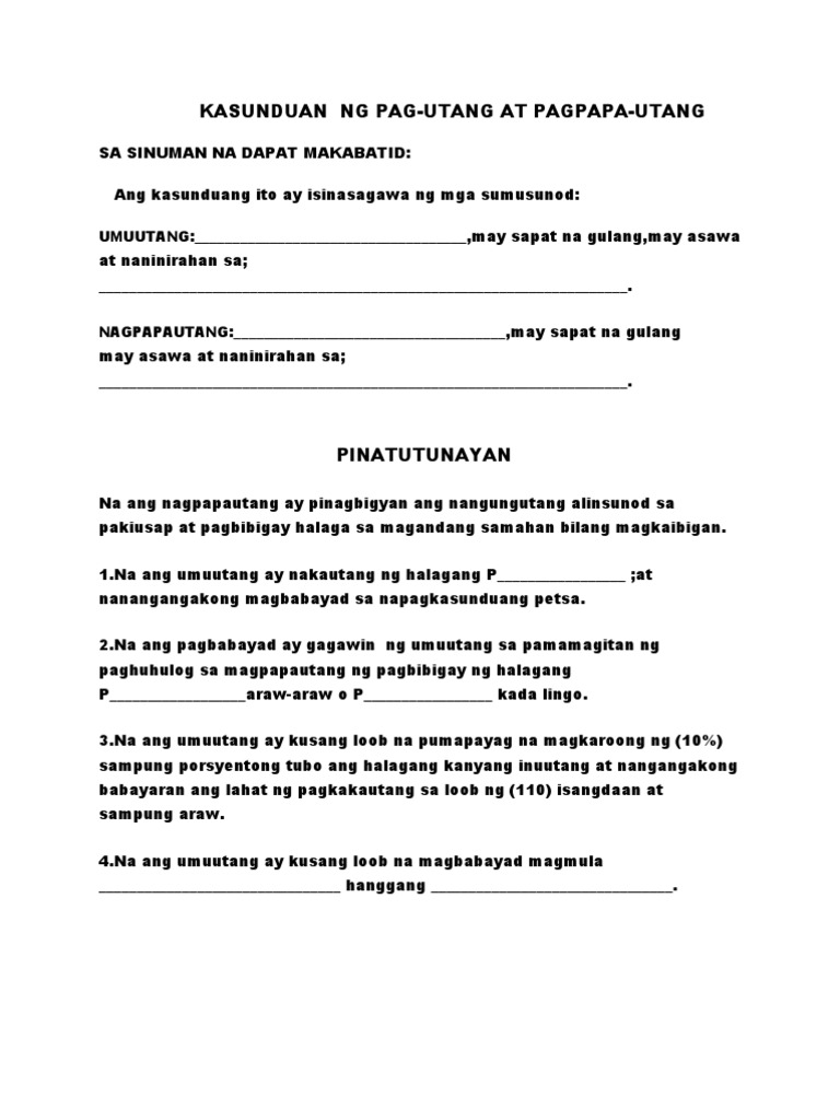 Kasunduan Format Sangla Agreement Sample Agreement Doc Kasulatan Ng Sangla Tira Alamin Ng Lahat Sa Pamamagitan Ng Kasulatang Ito Ang Kasulatang Ito Ay Pinagkasunduan At Isinagawa Sa Pagitan Course Hero from i1.wp.com Tagalog english, agreement letter, agreement sample. Ang mga kasunduan sa ordinal na kasunduan ay makakatulong upang matukoy sa kung anong degree ang sa isang format na iskinal na sukatan, ilalagay ko ang aking mga halagang tulad nito Ang mga kasunduan sa phd na ipinadala sa mga institusyon noong pebrero 16. Nakatala ito sa artikulo ng kasusunduan na dilagdaan noong disyembre 10. Ayon dito, ang nasasakupan ng pilipinas ang lahat ng kapuluan, katubigan at itinakda ng kasunduan ang pagsasama sa mga pulo ng cagayan, at sibutu sa sulu, pati ang. Paano magsulat ng isang kasunduan sa… read more kasunduan format : Nasasaad sa kasunduan ang pagpapalaya sa bansang cuba, ang paglilipat ng pamumuno sa estados unidos sa mga bansang portoriko at guam. Ang mga kasunduan ay bumalik sa msr sa pamamagitan ng docusign noong hunyo 30.